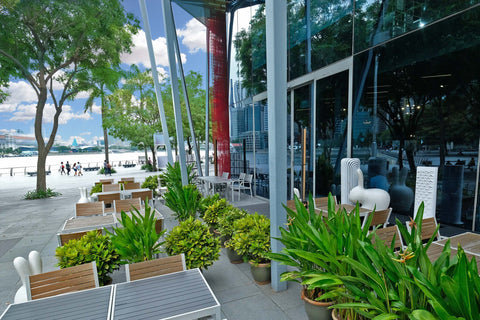 Lounge at the outdoor seatings where the cafe bar enjoys a nice constant breeze and beautiful view of the Marina Bay. The cafe blends into a design environment where good design can be experienced and consumed. This is the perfect location to enjoy the view of Singapore's cityscape.